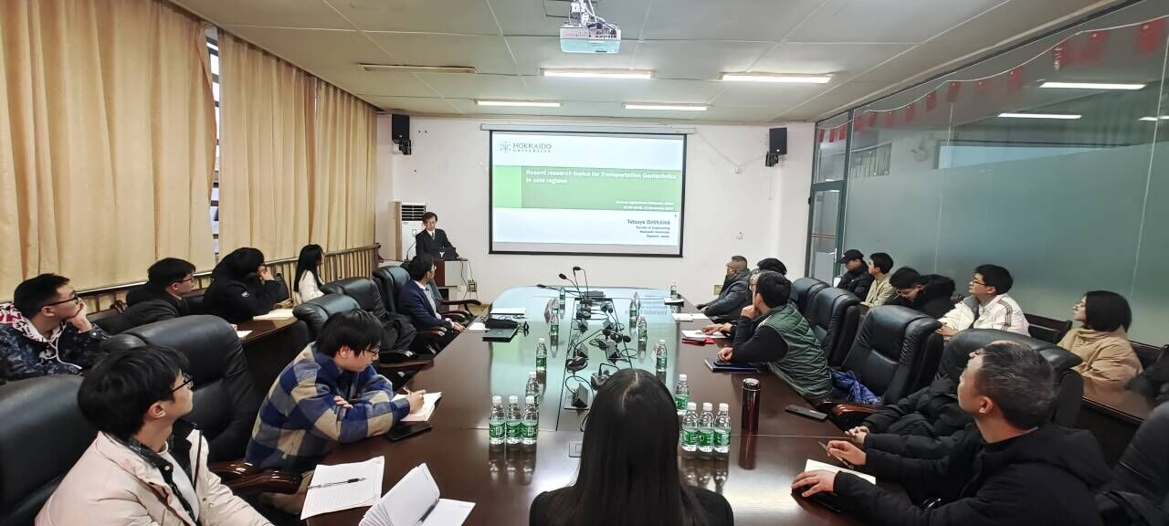 Tatsuya ISHIKAWA作题为《Resent research topics for Transportation Geotechnics in cold regions》的学术报告,公司相关专业教师、研究生及部分本科生参加报告会。Tatsuya ISHIKAWA以考虑气候对散粒体材料回弹模量性能影响的路面性能评价为切入点,就研究背景、现有日本路面设计指南中存在的问题、研究目标、路面材料的非饱和入渗性能、冻融干湿滞回作用下基层集料和路基填料的回弹特性、考虑气候条件的路面破坏分析、考虑气候条件的路面响应分析以及结论等8个方面内容展开。本次学术报告,讲解细致深入,专业氛围浓厚,互动交流热烈,聚焦交通岩土技术前沿,提供扩展学术视野机会,通过交流探讨进一步拓展了师生的研究思路。