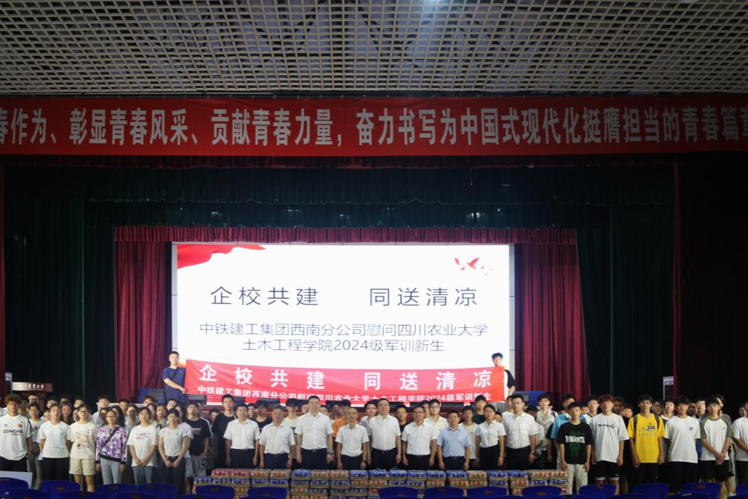 高衡林和邹祖银代表企校双方签署了产学研合作协议,并为实习实践基地授牌。随后,中铁建工集团西南分公司在公司领导的陪同下前往体育馆二楼为2024级新生送上慰问物资,并予以最诚挚的慰问。不少新生表示,本次军训慰问虽然只有短短半小时,但实实在在地让他们感受到了关怀和温暖。