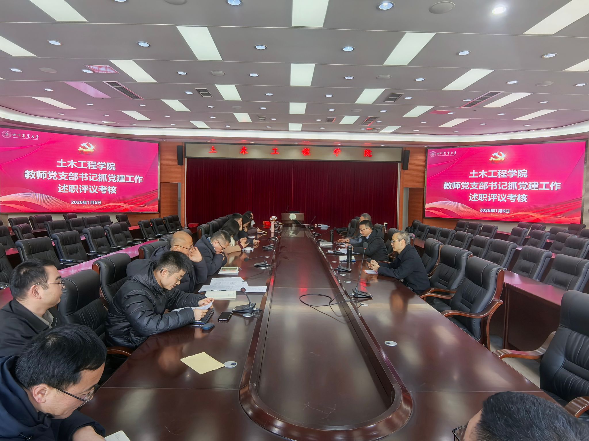会上,建筑工程系教工党支部、市政工程系教工党支部、岩土与地下工程系教工党支部、道路与桥梁工程系教工党支部,以及市政工程研究生党支部、结构工程研究生党支部、岩土工程研究生党支部、道路桥梁工程研究生党支部、土木工程员工党支部、给排水科学与工程员工党支部、道路桥梁与渡河工程员工党支部等11位党支部书记依次进行现场述职。各支部书记围绕年度工作,全面汇报了支部在加强政治建设、落实组织生活制度、发挥战斗堡垒作用等方面取得的成效,深刻剖析了当前工作中存在的短板与不足,并明确了今后的改进思路与努力方向。