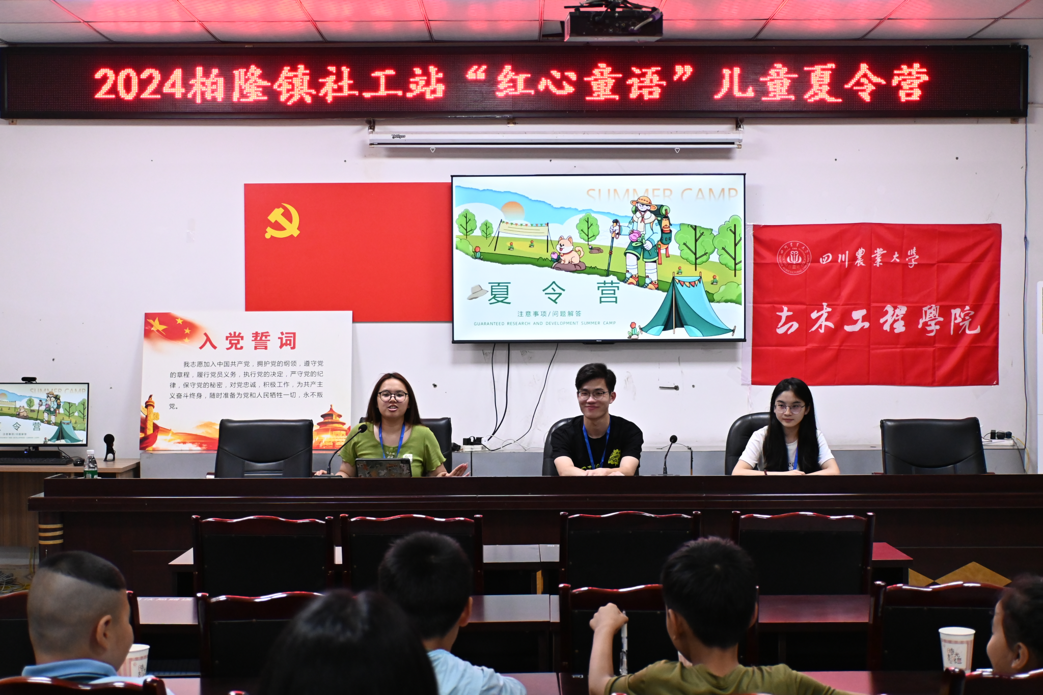 2024年7月8日,“彝路生花·红心童语”夏令营团队于德阳市旌阳区柏隆镇镇元桥村村委会进行开营仪式,此次参会成员有夏令营团队所有营员、各志愿者、政府相关负责人员以及柏隆镇社工站成员。此次开营仪式在鼓舞志愿者和营员的同时,更推动了接下来夏令营的开展。