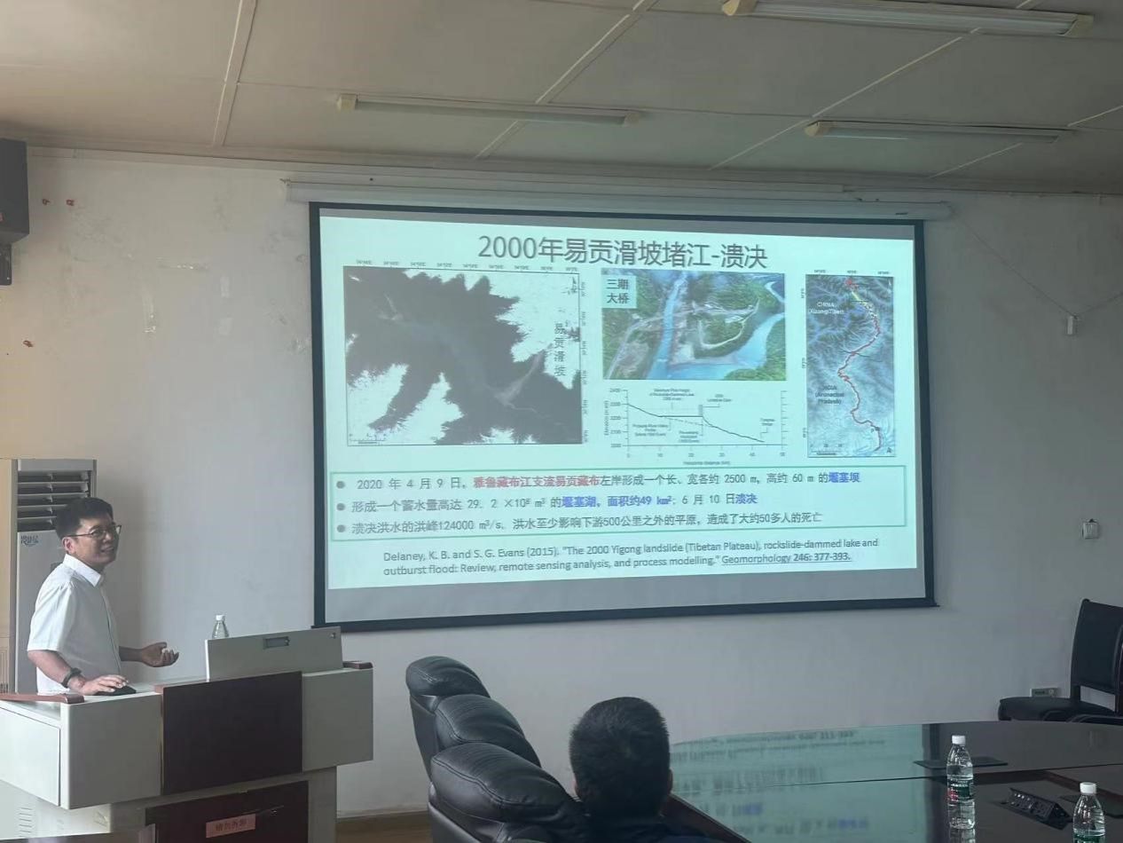 在报告中,刘维明研究员首先介绍了溃决洪水的基本概念和形成原因,阐述了山地地区溃决洪水对当地社会经济和生态环境的严重影响。随后,他深入分析了堰塞湖形成的地质过程及其稳定性,探讨了不同类型堰塞湖的溃决模式,并结合最新的研究成果提出了应对溃决洪水的关键技术和防治措施。