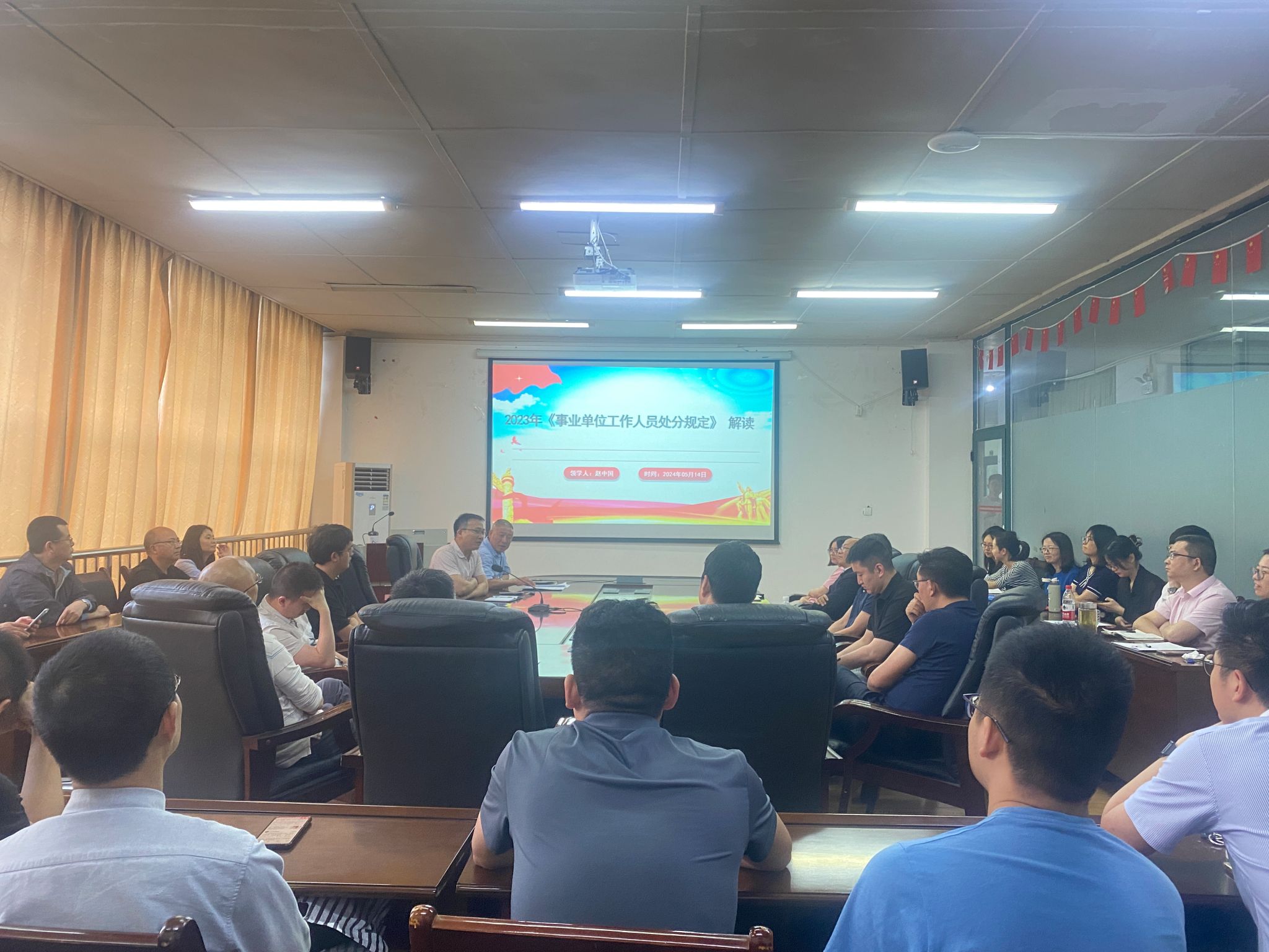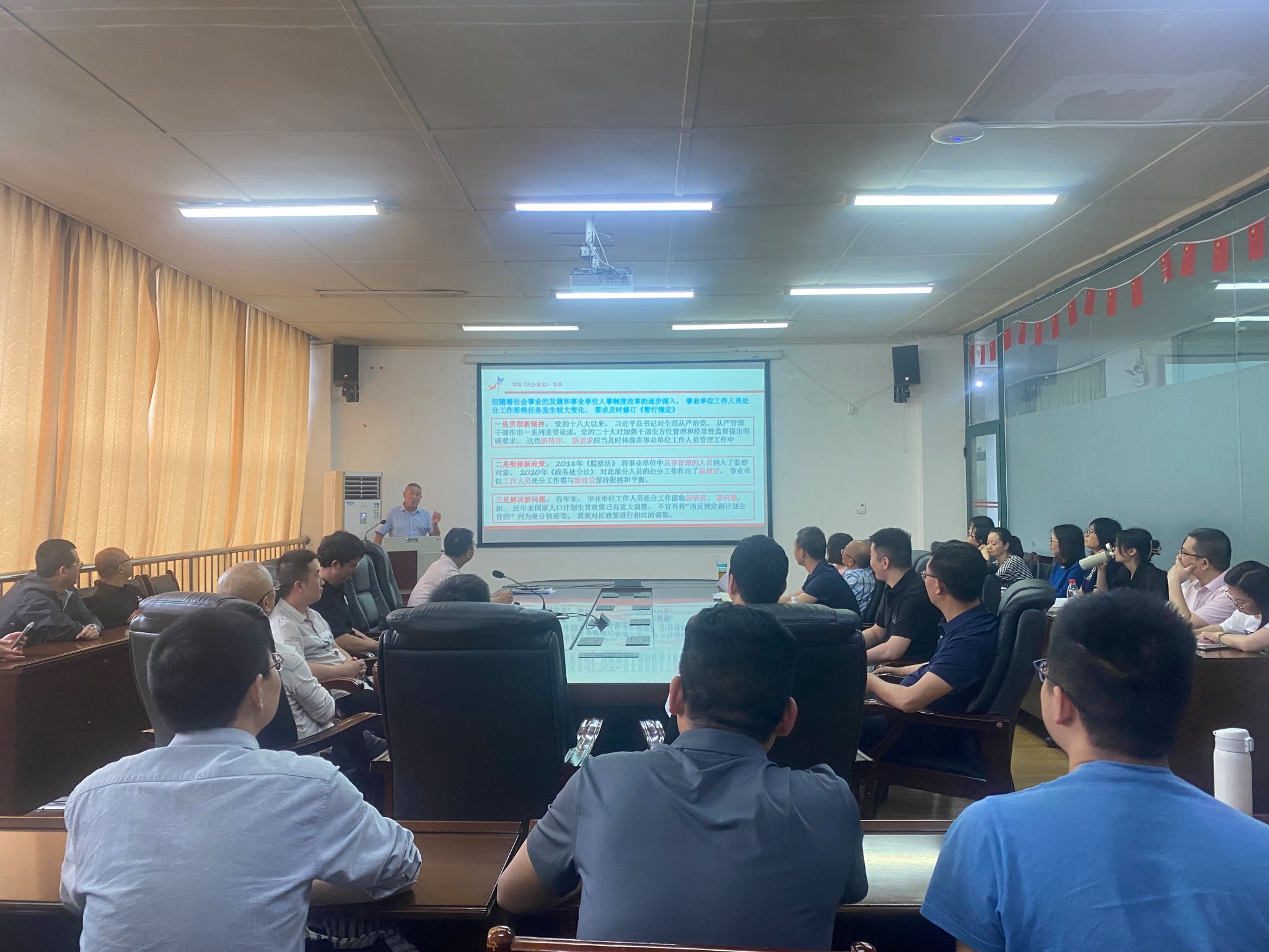 赵中国围绕条例修订背景、总体考虑、主要内容、修订的四大亮点进行了,并结合实际案例,对条例中的重点条款进行了细致、系统解读。通过生动的讲解和互动交流,全体人员对条例有了更加全面深入的认识和理解。