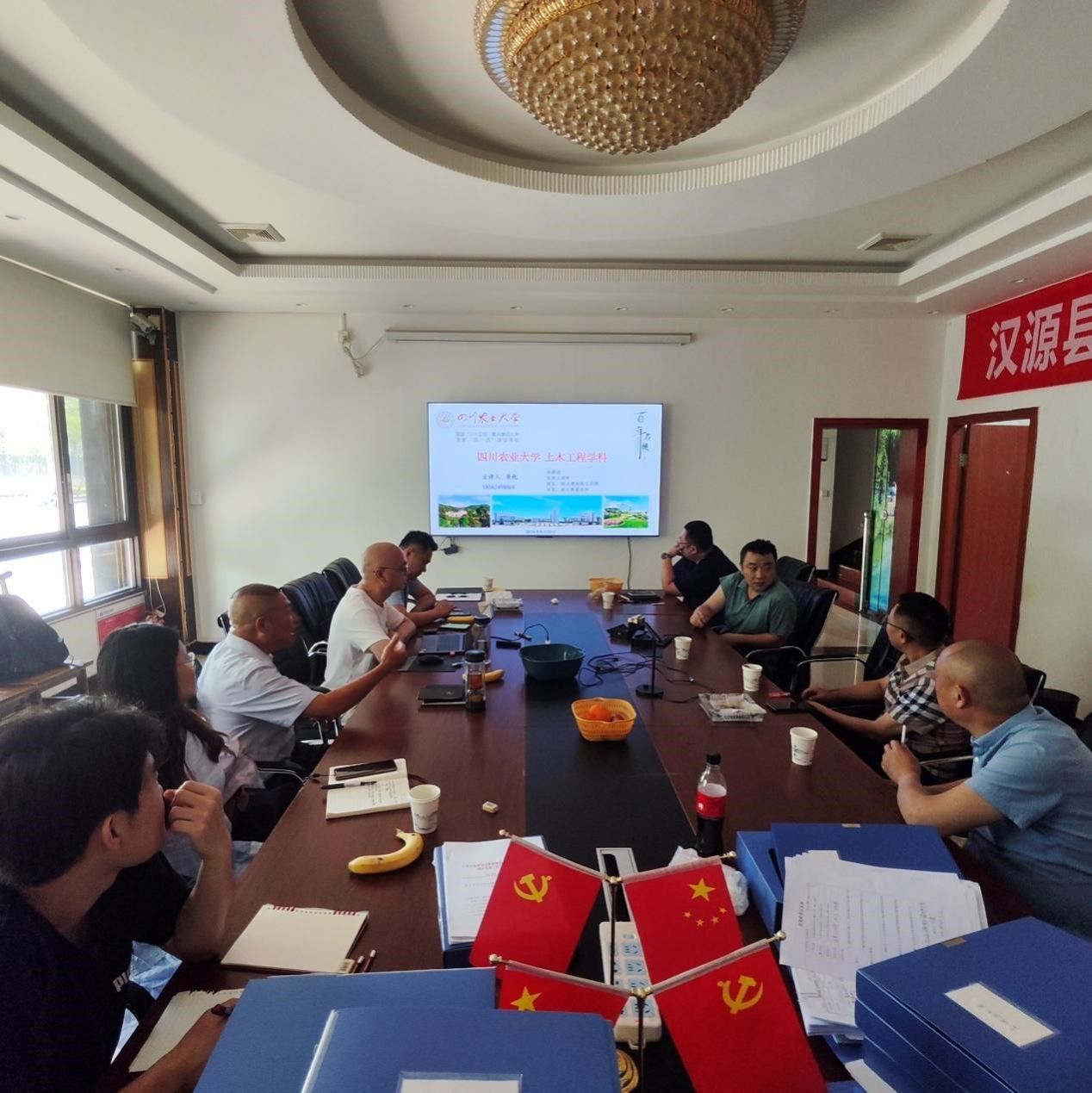 座谈会上,中铁十一局集团第五工程有限公司石棉汉源区域经理高强灵、中国电建集团成都勘测设计研究院有限公司城乡建设分公司汉源移民项目部副经理宁子龙、中铁十一局集团第五工程有限公司石棉汉源区域生产经理许伟,分别向公司师生一行的到来表示热烈欢迎,并介绍了各自企业的发展历程、人员构成、人才培养机制、经营模式和主要业务及企业对人才的需求等相关情况。他们纷纷表示,期盼引进更多川农土木工程专业的人才,也希望通过本次校企共建能在人才培养、产学研等方面建立长期友好合作关系。赵中国介绍了公司基本情况、办学优势与特色以及公司毕业生基本情况等,他表示院企双方要继续加强互访交流,希望在土木产学研方面联合攻关,为土木行业发展和高素质建筑人才培养共同努力,着力推进校企合作协同育人,将企业的选人用人需求融入员工的培养过程,与公司专业老师共同优化课程体系、更新教学内容,开展专业技能培训,以期培养更多时代、社会需求的优秀人才。