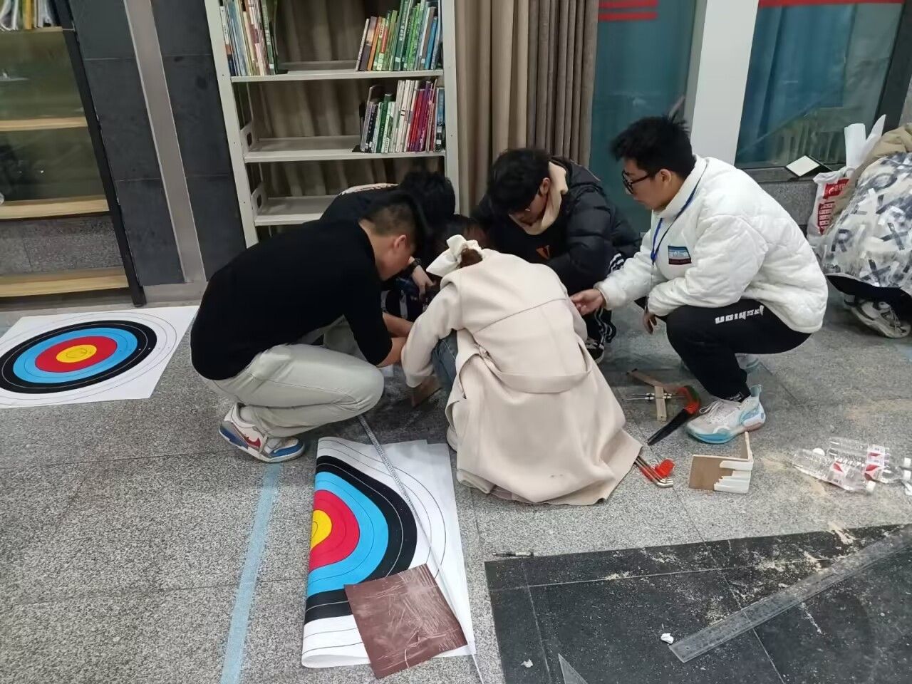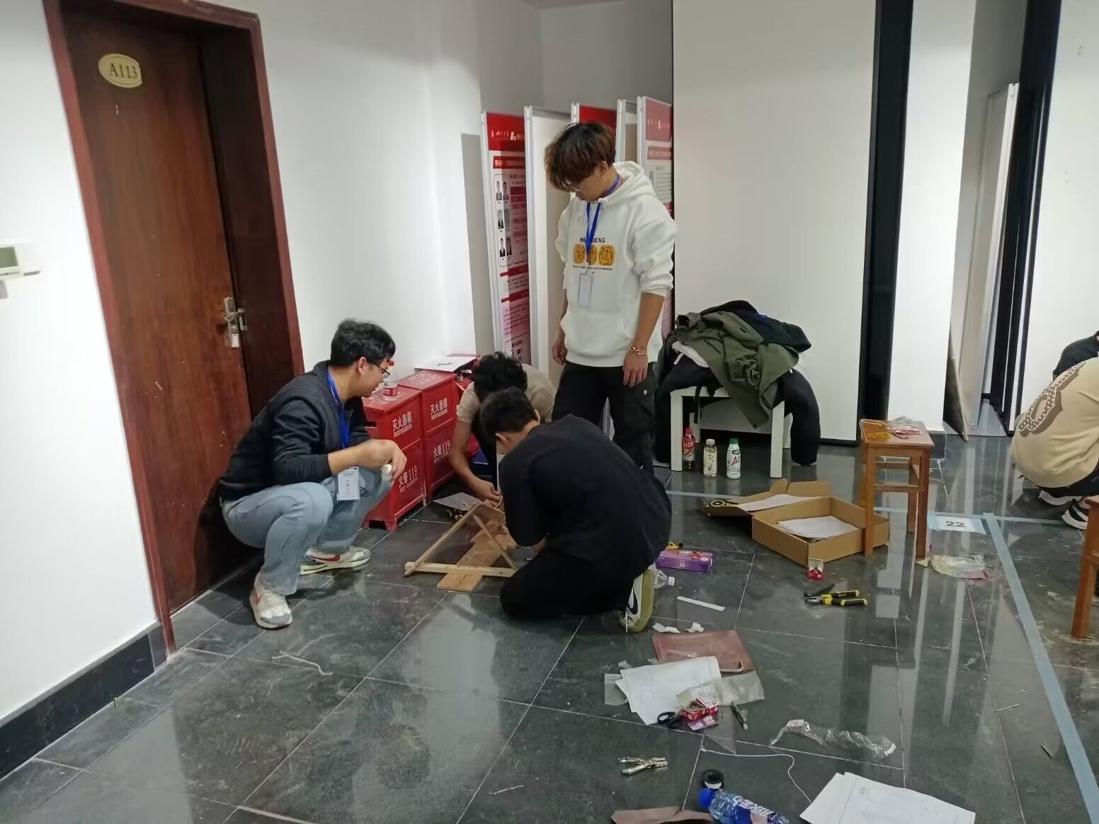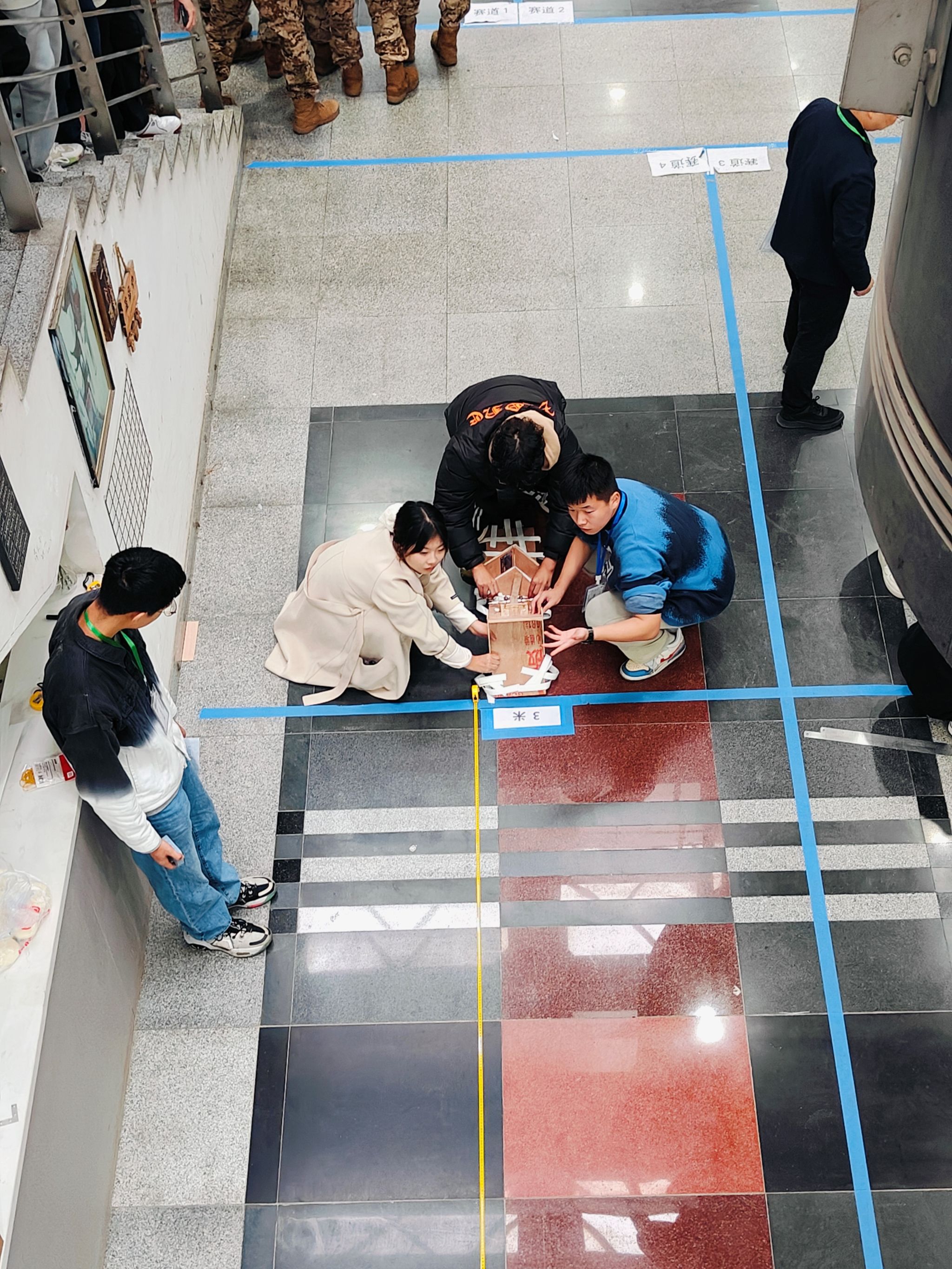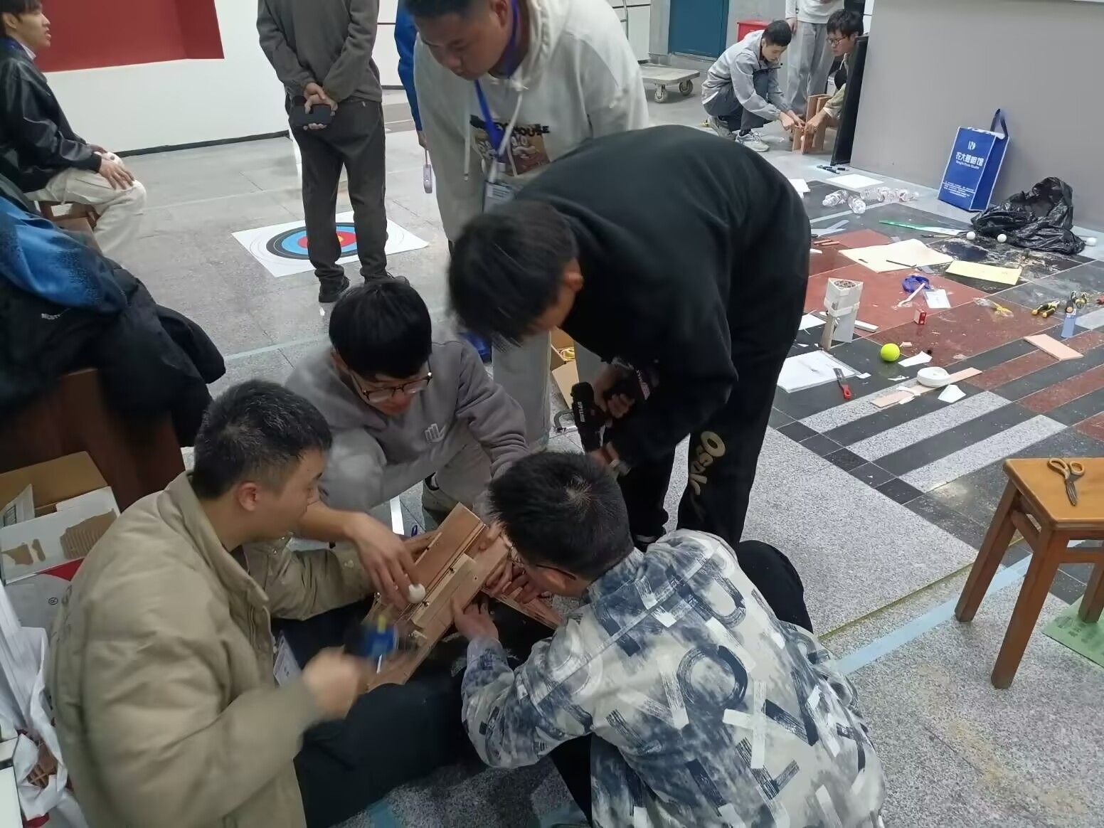 决赛主题为触发式定点投射,通过最终打靶的成绩进行成绩排名。在为期三小时的制作装置与测试阶段,公司三支队伍配合默契,分工明确,均在规定时间内完成装置制作,并充分测试。