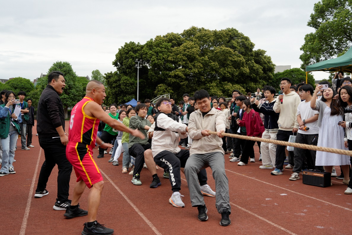 正式比赛当天,采用淘汰制进行角逐,每队共18名选手。随着裁判一声哨响,参赛队员紧握长绳、扎稳马步、身体后倾,在整齐的口号声中拼尽全力。绳中红线左右摇摆,胜负悬念迭起,场边观众挥舞旗帜,呐喊助威声震耳欲聋。经过2轮激烈角逐,太阳成集团tyc33455cc代表队荣获冠军!