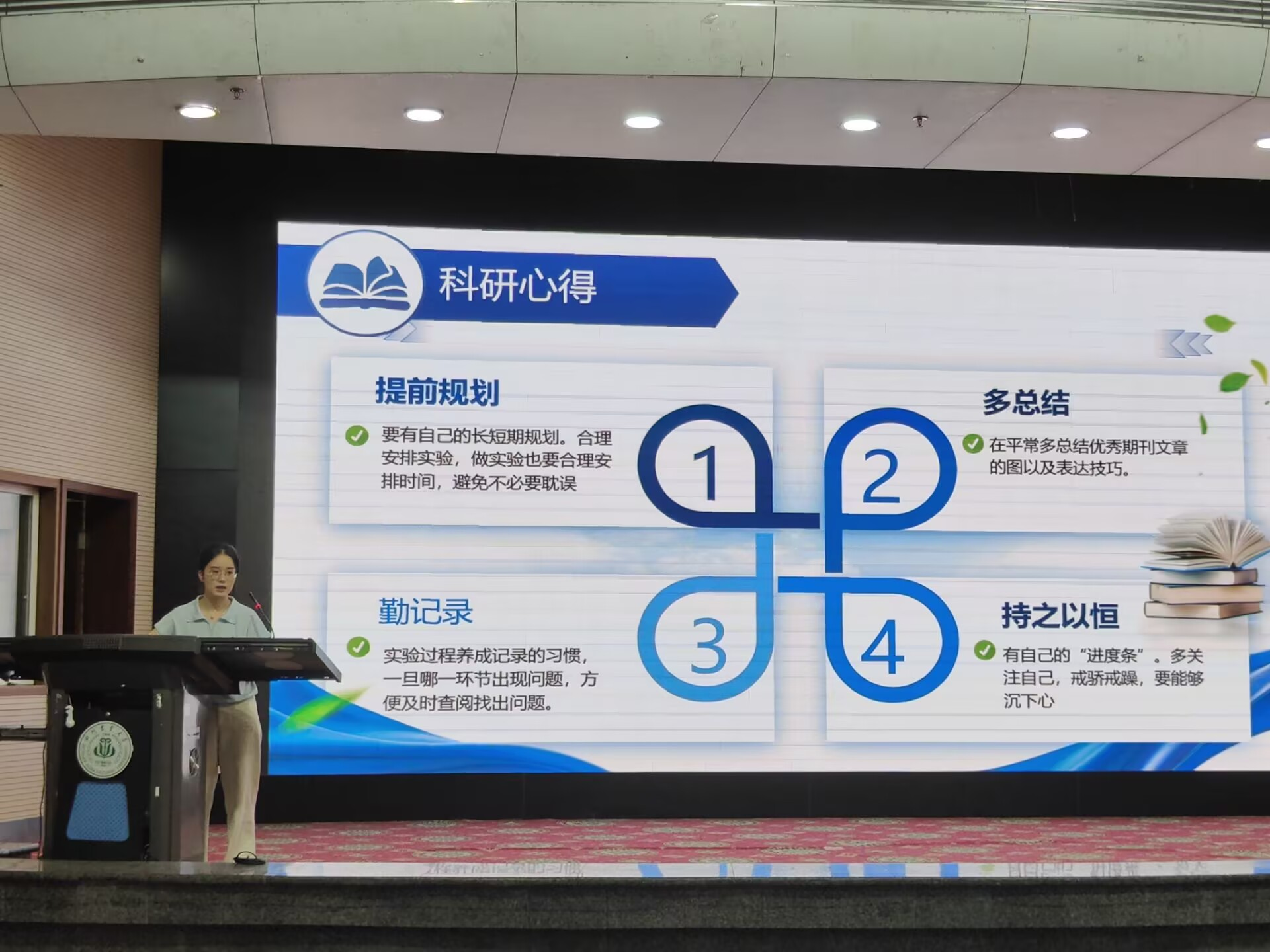 唐俊峰老师在会议最后阶段强总结,本次“睿木兴华”研究生学术沙龙,通过优秀研究生的经验分享与互动交流,为同学们搭建科研学习与沟通的平台,公司在学术活动月会继续推进更多优秀师生参与到研究生学术沙龙、院级学术论坛、班团学术活动等活动。传递积极探索、勇于创新的科研精神,希望广大研究生能从中明确科研路径、提升科研素养,推动公司学术传承与发展。