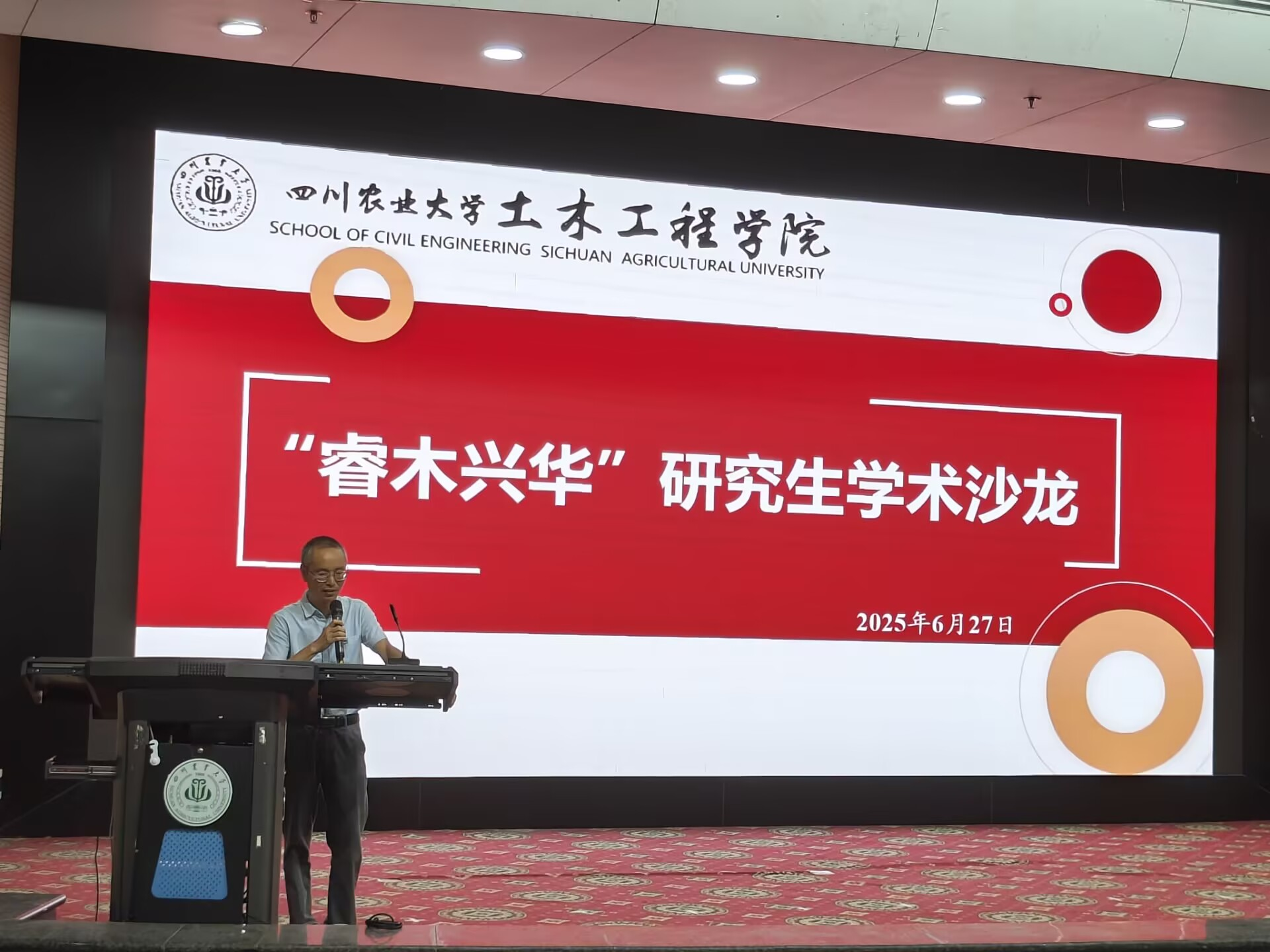 为弘扬严谨治学精神,激发研究生科研创新潜能,助力研究生提升科研能力,营造浓厚学术氛围,推动公司学术交流与发展,公司于2025年6月27日上午10点在都江堰校区图书馆报告厅举办“睿木兴华”研究生学术沙龙。本次会议邀请2023级优秀研究生代表甘芮、2024级优秀研究生代表徐大凯分享科研经历和学术心得。公司经理邹祖银、岩土与地下工程系副主任唐俊峰出席本次会议,党委办公室老师邓克莉主持会议。