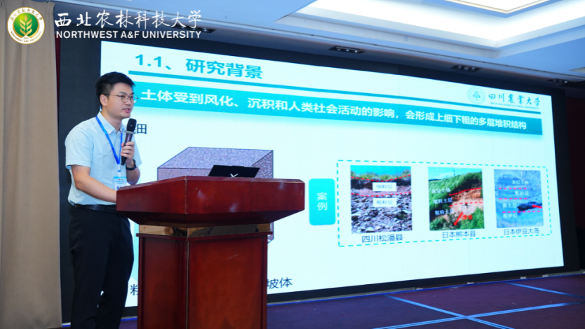 唐俊峰副教授在分会场报告中作了题为《渗流作用下毛细屏障覆盖层细颗粒迁移与孔隙结构变化规律》的学术报告,通过室内模型实验及数值模拟,阐明了多层坡体中不同水力梯度和粒径比下多层坡体中细颗粒流失与堵塞规律。