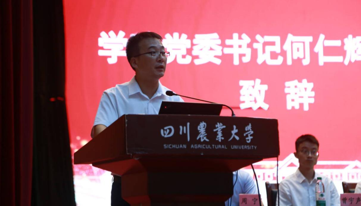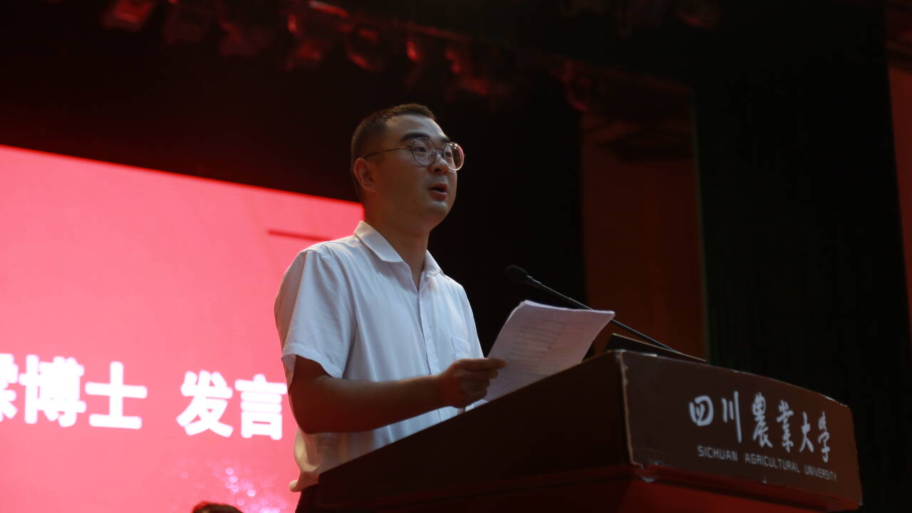 教师代表何俊霖以“学长与教师”的双重身份,深情回顾了自己在川农的求学岁月,并勉励新生要以专业学习为根基,统筹学业与生活;珍惜实践机遇,拓展人际交往,培养良好习惯,书写无悔青春。