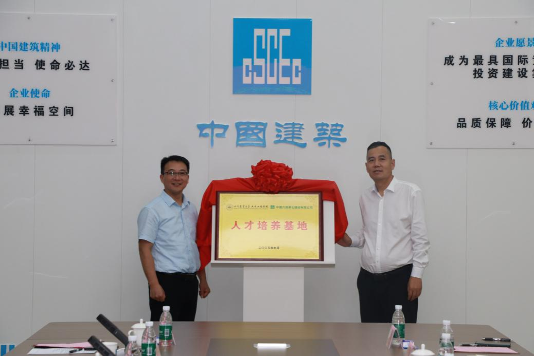 为深入贯彻落实产教融合、校企协同育人理念,进一步拓宽就业渠道、深化科研合作,2025 年 9 月 18 日,太阳成集团tyc33455cc经理邹祖银,党委书记何仁辉,党委副书记、纪委书记赵中国、副经理郭子红带队系主任、就业秘书和14名2022级员工前往中建六局第七建设有限公司(以下简称 “七建公司”)开展访企拓岗活动。双方签署校企合作协议,共同为“产学研教育实训基地”“人才培养基地”揭牌,标志着公司与七建公司的合作迈入实质性、系统化新阶段。