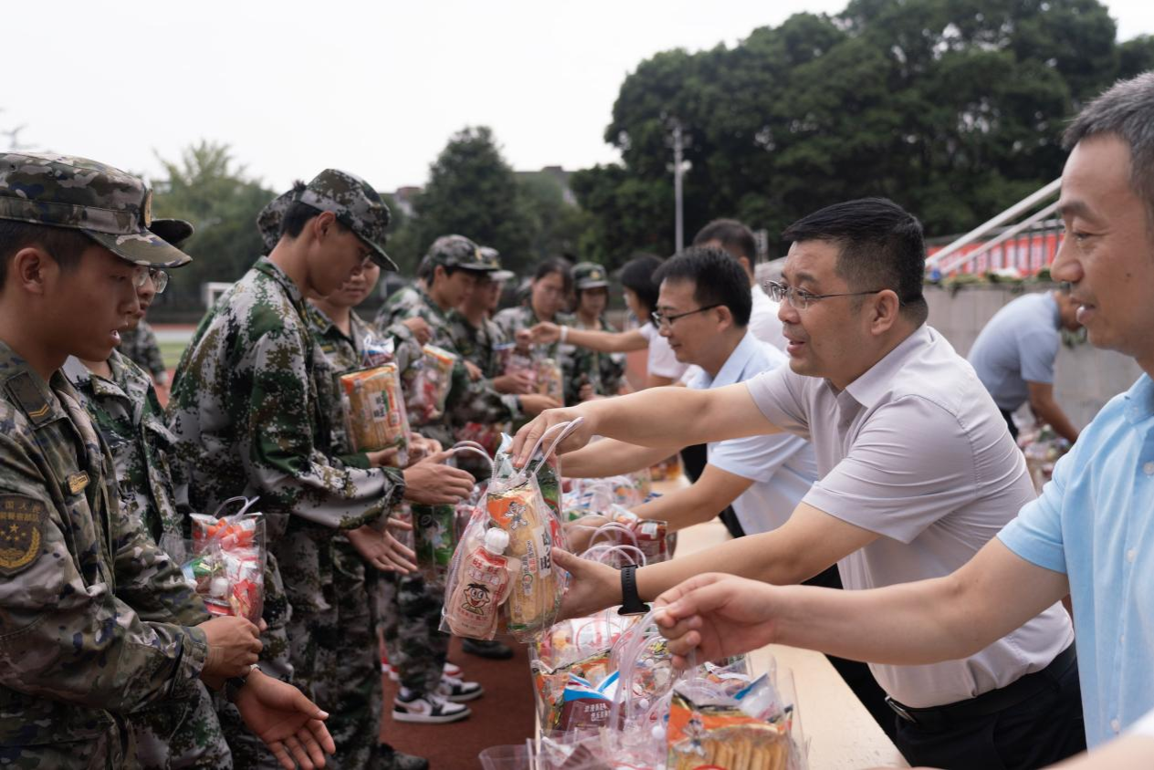 九月秋阳暖,军训正当时。为切实传递校企关怀、强化党建联建育人实效,9月25日上午,一场打破传统慰问模式的校企联动活动在都江堰校区运动场展开,公司党委与中铁建工集团西南分公司党委以“党建联建 + 实践育人”为核心,创新打造军训慰问新场景,为近 400 名参训新生送来兼具关怀温度与行业深度的“成长大礼包”,开启校企协同培育建筑行业新人的全新探索。中铁建工集团西南分公司党委书记、副总经理范国强,党委副书记、工会主席刘威,公司党委书记何仁辉、党委副书记、纪委书记赵中国,副经理郭子红出席活动。
