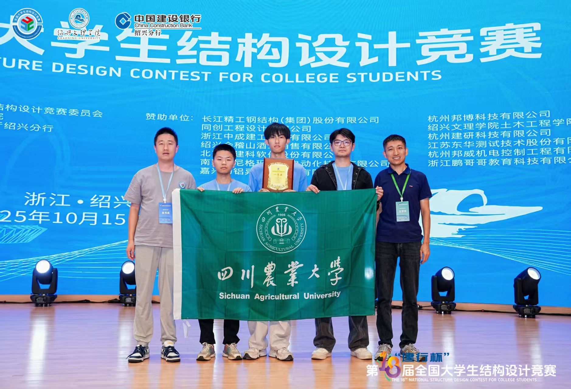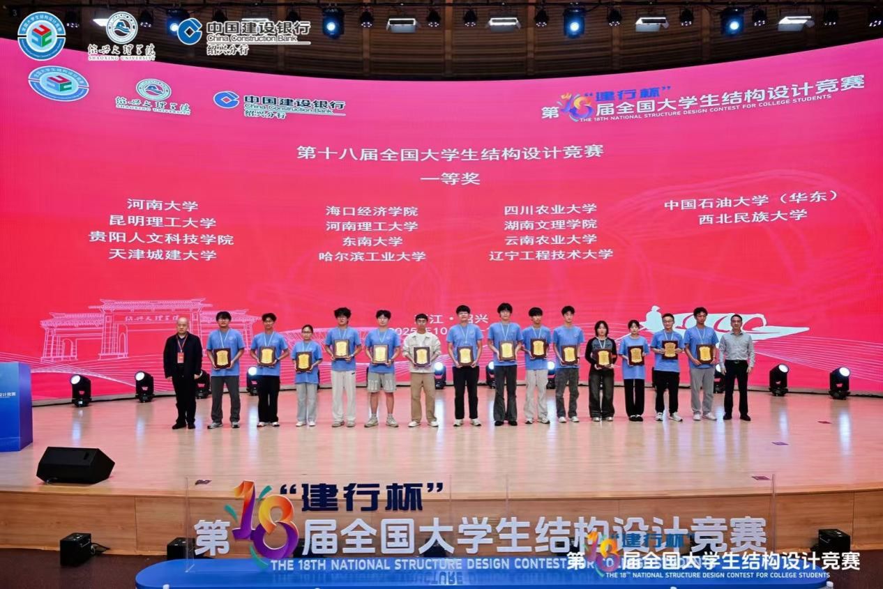 10月15日-19日,为期5天的2025年“建行杯”第十八届全国老员工结构设计竞赛在绍兴文理公司成功举办。公司代表队凭借卓越的结构创新设计与扎实的工程实践能力,从来自清华大学、同济大学、哈尔滨工业大学等全国119所高校的120支精英队伍中脱颖而出,首次斩获全国一等奖,取得历史突破!
