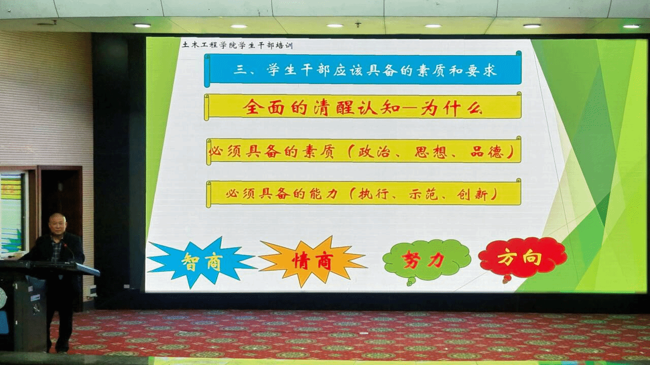为帮助员工干部进一步明确职责、夯实工作基础,员工会办公室负责人刘亦婷对员工干部培养办法及班团量化考核内容进行解读;团委组织建设与发展指导中心负责人单家豪就团组织生活、团内评优及基础团务工作讲解要点;员工会学习学术部负责人覃敏慧详细介绍了课程秘书职责及考核加分办法。最后,道桥(本)202302班长伍春宏以“服务·协调·引领”为主题,分享优秀班集体建设经验,激励员工干部以责任诠释担当,以创新驱动成长。