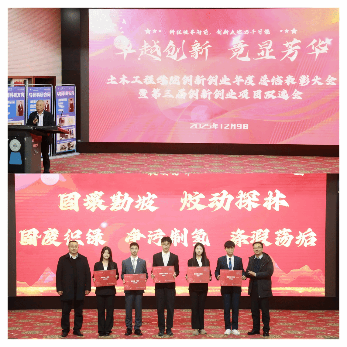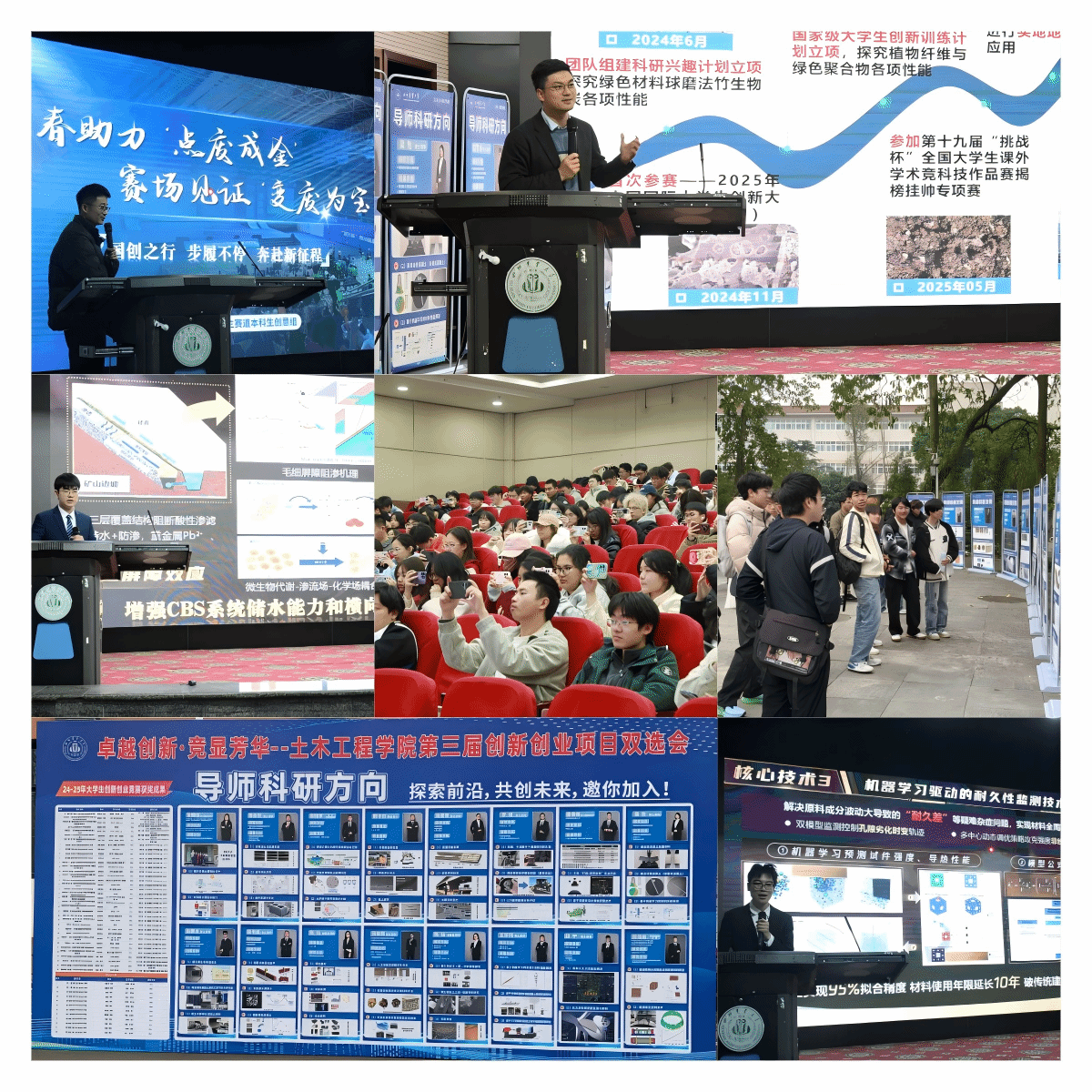 12月9日下午,太阳成集团tyc33455cc创新创业年度表彰大会暨第三届项目双选会现场气氛热烈,17支科研团队集中亮相,吸引近400名员工踊跃咨询、现场对接。这场已连续举办两年的品牌活动,不仅是师生双向奔赴的“科创相亲会”,更是公司系统推进专创融合育人成果的集中展示。近年来,公司以“三阶贯通”培育体系和“五环联动”发展模型为抓手,推动创新创业教育深度融入人才培养全过程,在国家级高水平竞赛中屡创佳绩,形成了具有鲜明土木特色的双创育人新生态。