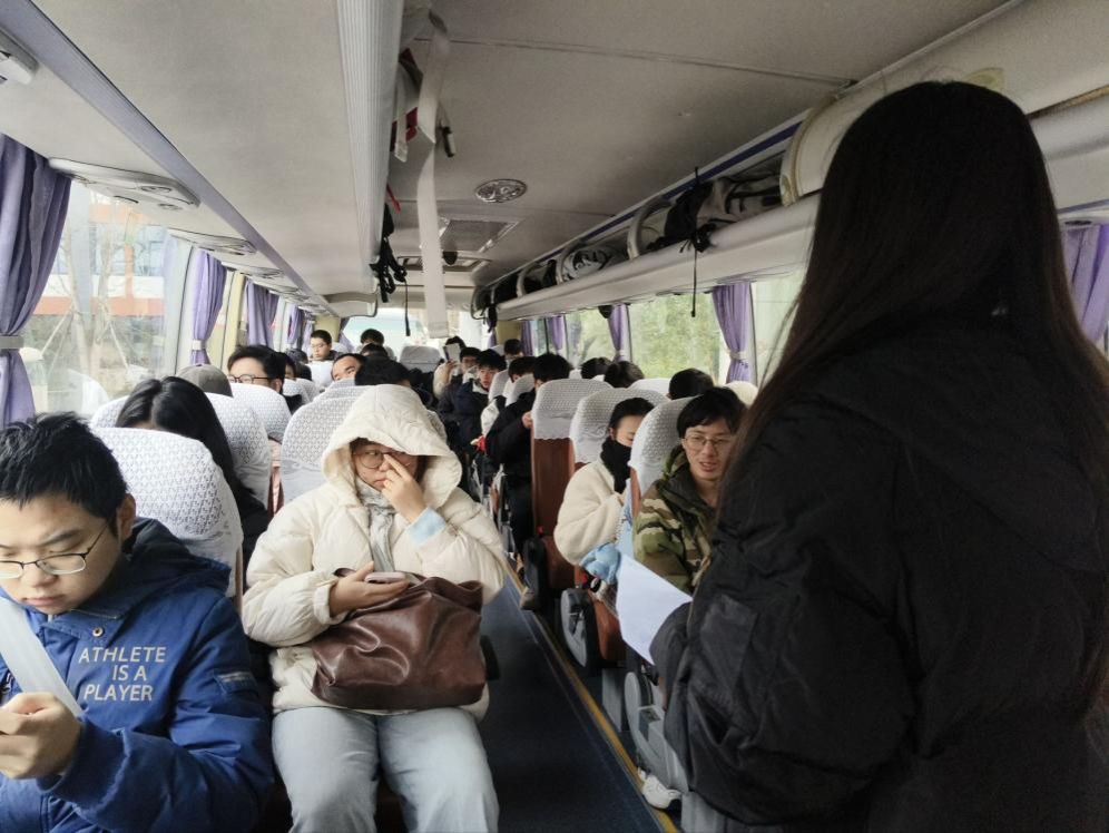 在老师的引导下,61名考研学子精神饱满,有序登车。车内气氛宁静而专注,有人闭目凝神,有人默诵重点,彼此间偶尔交汇的眼神中,传递着默契与鼓励。一位考生表示:“公司安排专车送考,不仅节省了路途奔波,更让我们感受到不是孤身作战。”