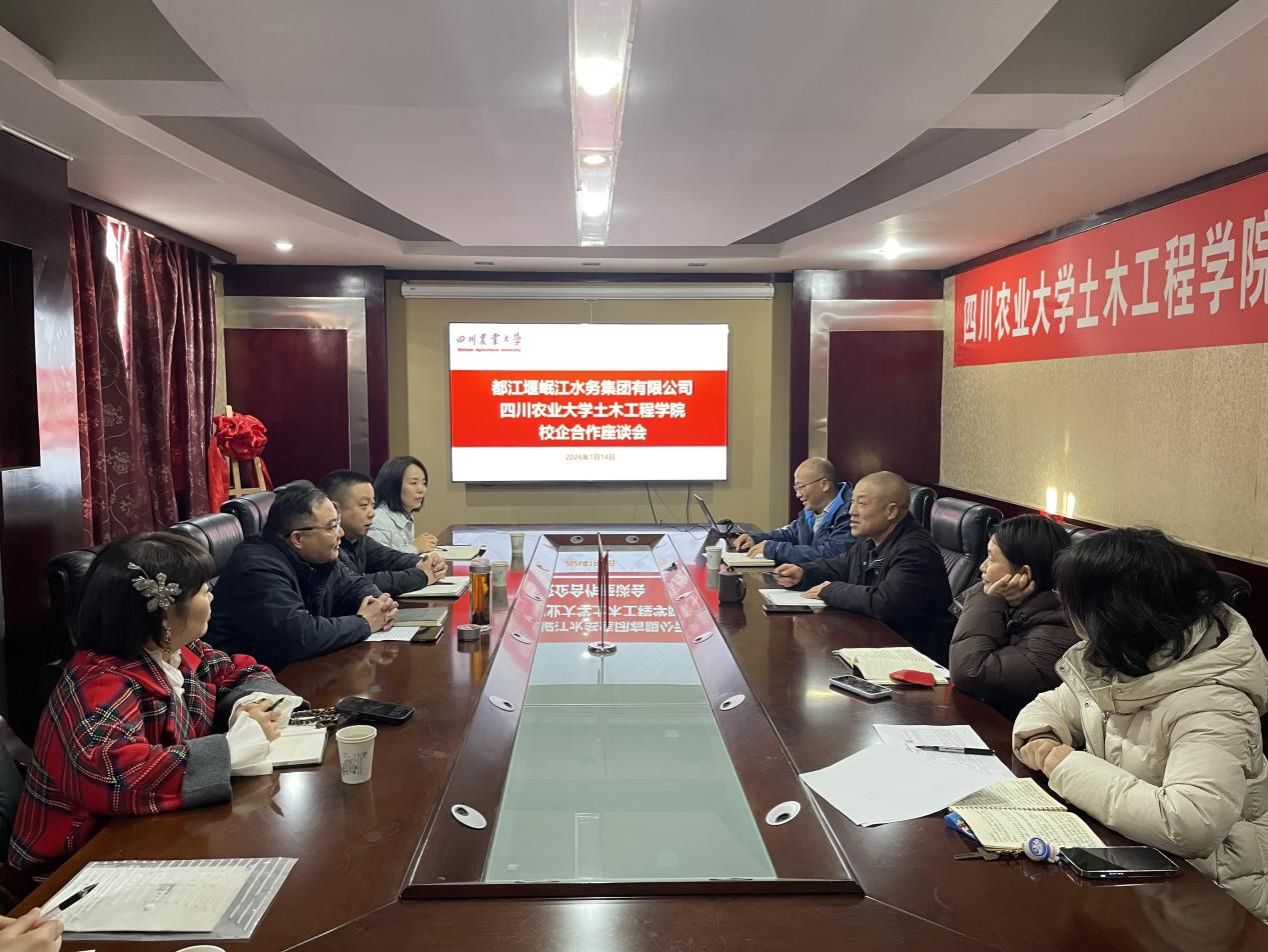 为精准对接行业需求、深化产教融合协同育人,1月14日,都江堰岷江水务集团党总支书记、董事长冯超,总经理王培东,副总经理汪莉一行走进公司,与公司党委副书记、纪委书记赵中国,市政工程系主任罗鸿兵,系副主任张可,实验中心副主任马丹丹等骨干教师及就业工作负责人齐聚一堂,围绕“人才共育、技术共研、资源共享”主题,开展了一场务实深入的校企合作交流座谈会。